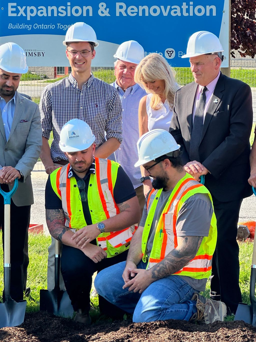Mayor Jeff Jordan and Town Council were joined by Amarjot Sandhu, Parliamentary Assistant to Ontario’s Minister of Infrastructure, and Sam Oosterhoff, MPP for Niagara West, to celebrate the groundbreaking of the Peach King Centre (PKC) Expansion and Renovation.